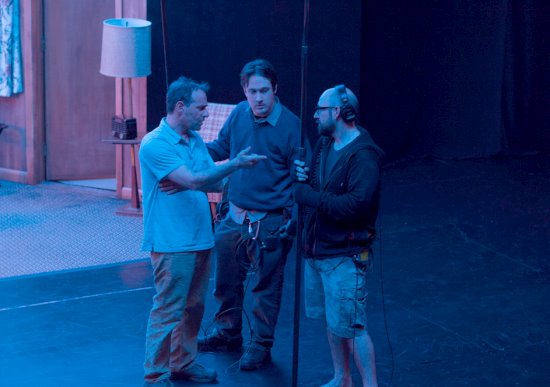 Los tres tratando de descifrar el plan a seguir: Tom Varga y los operadores de boom Brendan O’Brien y Adam Sánchez (Foto: Alison Cohen Rosa)