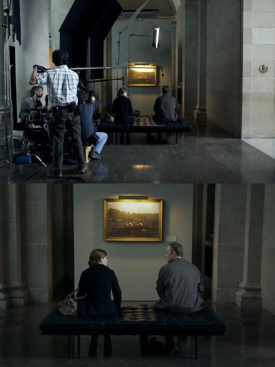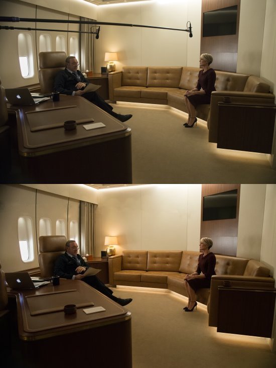 Afortunadamente tenemos todo un equipo de cámara muy experimentado, con camarógrafos que están siempre pendientes de cosas que quizás yo no puedo ver. Todo el equipo de House Of Cards es muy respetuoso tanto de nosotros como de nuestros tracks. Los sets y los estudios son poco ruidosos. Los actores lo exigen. Muchas veces, antes de que haya podido siquiera decirle al asistente de dirección sobre problemas con el ruido durante una toma, un actor ya lo ha hecho. Y así debe ser siempre.